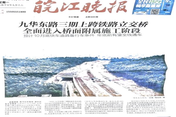 近日,馬鞍山電視臺《馬鞍山新聞聯(lián)播》欄目頭版頭條、《皖江晚報》頭版頭條以及其官方微信公眾號以《加快交通大建設(shè),推動經(jīng)濟大發(fā)展》為題,報道馬鞍山市圍繞改善交通格局、解決城市擁堵、拓展城市空間目標,持續(xù)推動一批交通重大項目建設(shè)進程,加快補齊交通基礎(chǔ)設(shè)施短板,全力打造外聯(lián)內(nèi)暢、群眾滿意的大交通格局。新聞對公司承建的九華東路三期道路工程項目的施工進展情況進行了詳細介紹。