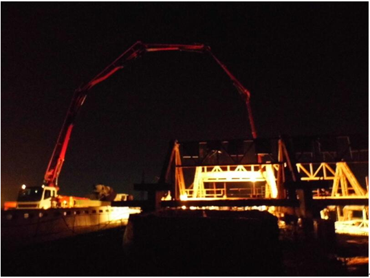 2016年4月9日清晨5點(diǎn),安徽路港公司承建的裕溪河特大橋左幅順利合龍。本次合龍施工從9日凌晨1點(diǎn)開始,歷經(jīng)4個小時。裕溪河特大橋最后一個合龍段完成混凝土澆筑,標(biāo)志著裕溪河特大橋主體工程全部順利完工。