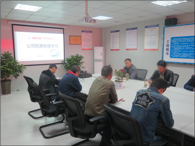 4月16日晚上、17日晚上,沙潁河QL-03標(biāo)項目部在會議室組織學(xué)習(xí)«安徽省路港工程有限責(zé)任公司規(guī)章制度匯編2016版»和«臨時用電制度»。