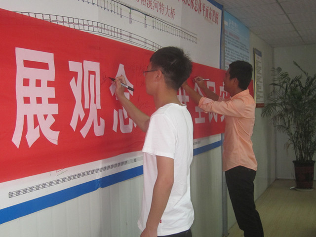 活動(dòng)過(guò)程中,項(xiàng)目部技術(shù)負(fù)責(zé)人帶領(lǐng)大家宣讀了誓詞,結(jié)合大橋工程的實(shí)際情況,指出了項(xiàng)目安全質(zhì)量工作中的難點(diǎn)、重點(diǎn),對(duì)項(xiàng)目全員進(jìn)行了一次安全質(zhì)量現(xiàn)場(chǎng)教育。