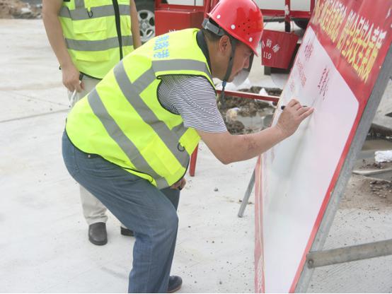 為響應全國“安全生產月”活動號召,6月22日下午,合肥市銅陵路高架項目部全體職工在公司安全管理部經(jīng)理凌必勝的帶領下,開展“安全生產月”宣誓簽名儀式。