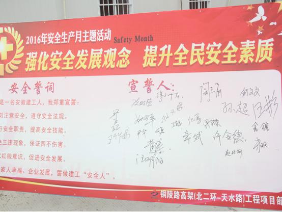 合肥市銅陵路高架項目部開展“安全生產月”宣誓簽名儀式