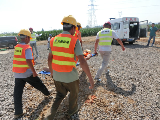 為提高全員應(yīng)對突發(fā)事故的應(yīng)急處理能力,及時、有效、正確地?fù)尵葌麊T,最大程度減少人員及財產(chǎn)損失,8月27日上午,安徽路港安陽西北繞城高速公路土建四標(biāo)項(xiàng)目部組織開展了高處墜落、觸電、中暑三類常見事故應(yīng)急救援演練。項(xiàng)目部應(yīng)急領(lǐng)導(dǎo)小組組長、項(xiàng)目總監(jiān)現(xiàn)場進(jìn)行指導(dǎo)。