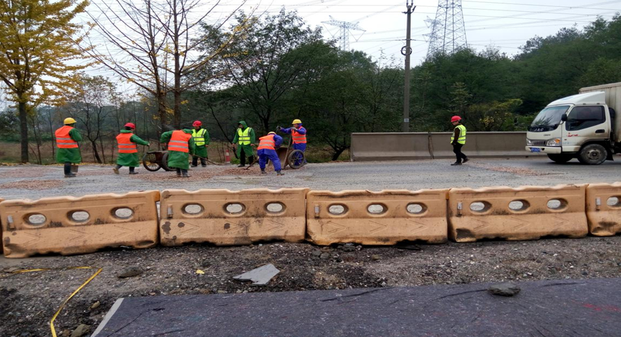 剛開(kāi)始,過(guò)往車輛有序依次通過(guò),大概半個(gè)小時(shí)后,一部渣土車壞在了橋頭處,阻擋了后面車輛的通行,再加上天色已晚,很多車輛著急回家,現(xiàn)場(chǎng)交通一度陷入混亂。項(xiàng)目技術(shù)負(fù)責(zé)人在現(xiàn)場(chǎng)召開(kāi)了緊急臨時(shí)會(huì)議,決定打開(kāi)左幅水穩(wěn)段單向放行,經(jīng)過(guò)指揮,通行情況恢復(fù)正常,搶修工作得以繼續(xù)。在經(jīng)過(guò)近5個(gè)小時(shí)的連續(xù)奮戰(zhàn)后,終于將坑洼處全部回填完畢,車輛恢復(fù)正常通行后,大家才撤離現(xiàn)場(chǎng)。