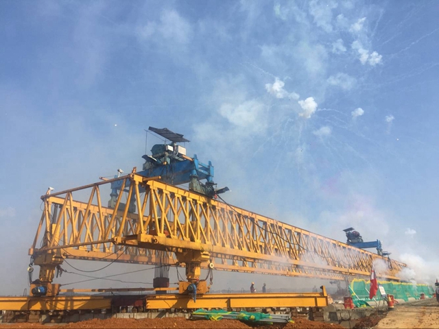 G318改建工程南河大橋最后一片T梁順利架設完成