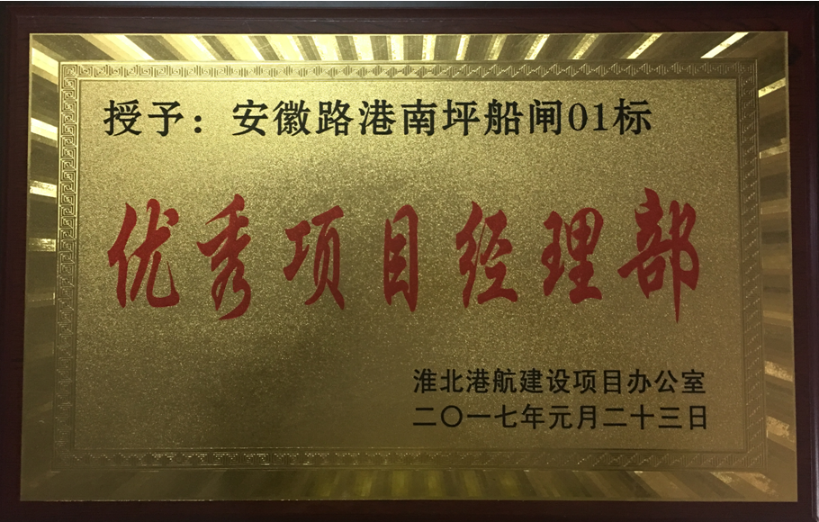 春節(jié)前夕,在建設單位淮北港航建設項目辦組織的年度評選中,澮河南坪船閘工程01標項目部被授予2016年度“優(yōu)秀項目經理部”榮譽稱號,項目部班子成員和安全負責人被授予2016年度安徽省港投集團“先進個人”榮譽稱號。