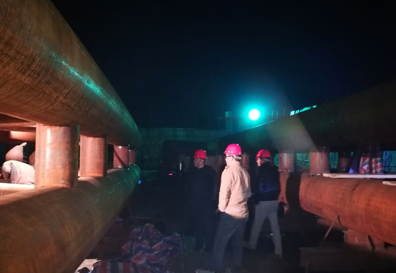 近日,在北川溜索改橋項目施工現(xiàn)場,工人們正在挑燈夜“戰(zhàn)”,加班加點趕工期。