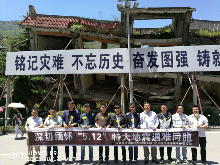 5月12日中午,安徽路港成都分公司黨支部組織分公司和北川樓房坪溜索改橋項(xiàng)目部全體職工赴北川老縣城地震遺址區(qū)深切緬懷“5.12”特大地震遇難同胞。