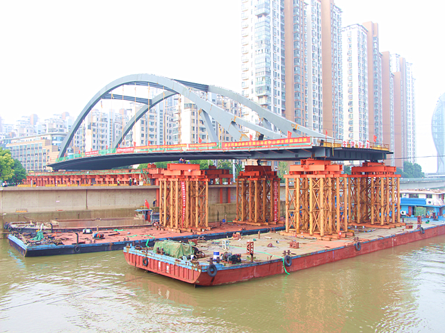 10月2日,安徽路港蕪湖中山橋項目部全體員工主動放棄休假,克服了天氣惡劣、水流急速、作業(yè)時間跨度長、技術難度大、危險系數高等困難,經過三天四夜的艱苦奮戰(zhàn),順利完成主橋頂推施工,按時完成業(yè)主下達的第二項節(jié)點目標。
