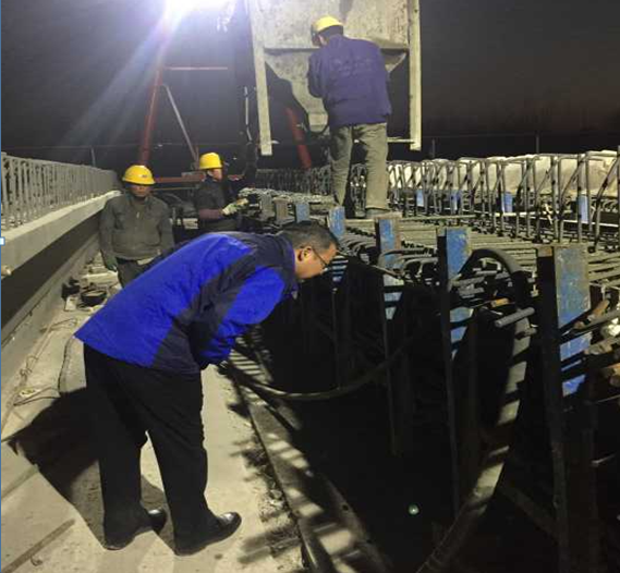 張經(jīng)理一行深入混凝土拌合站、混凝土澆筑現(xiàn)場、工地試驗(yàn)室,就外加劑和水泥的適配性、拌合物的工作性、實(shí)體外觀進(jìn)行仔細(xì)察看并現(xiàn)場檢測混凝土實(shí)體強(qiáng)度。張幫偉指出,外加劑摻量應(yīng)根據(jù)原材變化情況采用動(dòng)態(tài)控制,保證設(shè)計(jì)水灰比;溫度變化較快時(shí),應(yīng)適當(dāng)延長攪拌時(shí)間確保水泥與外加劑充分反應(yīng);外加劑研發(fā)、生產(chǎn)人員要加強(qiáng)學(xué)習(xí),加大母料檢測力度,配置前做好試驗(yàn),配置后做好檢測,并留樣封存,不斷總結(jié)提高。