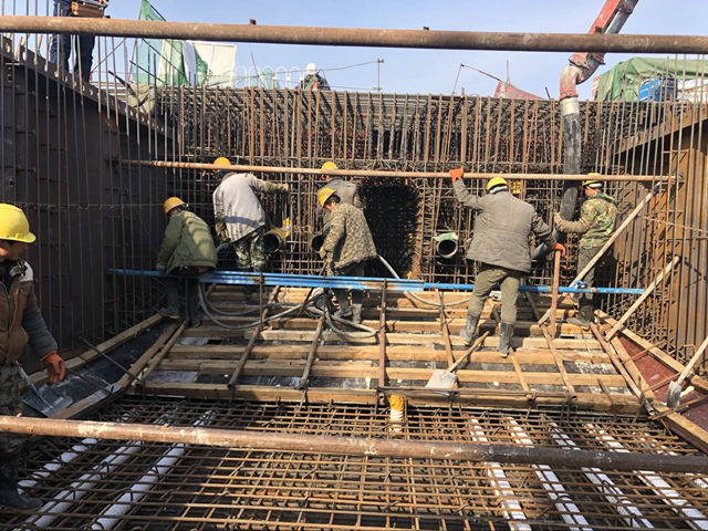 為按時完成施工任務(wù),項(xiàng)目部參建人員積極響應(yīng)大干號召,克服冬季施工不利條件、混凝土供應(yīng)緊張等諸多困難,堅守崗位、頑強(qiáng)拼搏,于2月7日至8日,完成132#墩左幅現(xiàn)澆段底板澆筑、133#墩左幅14#塊澆筑、135#墩右幅現(xiàn)澆段底板澆筑。為保證冬施取暖和保暖工作滿足工程質(zhì)量要求,項(xiàng)目部投入空調(diào)、土工布、棉被等對混凝土進(jìn)行保暖。