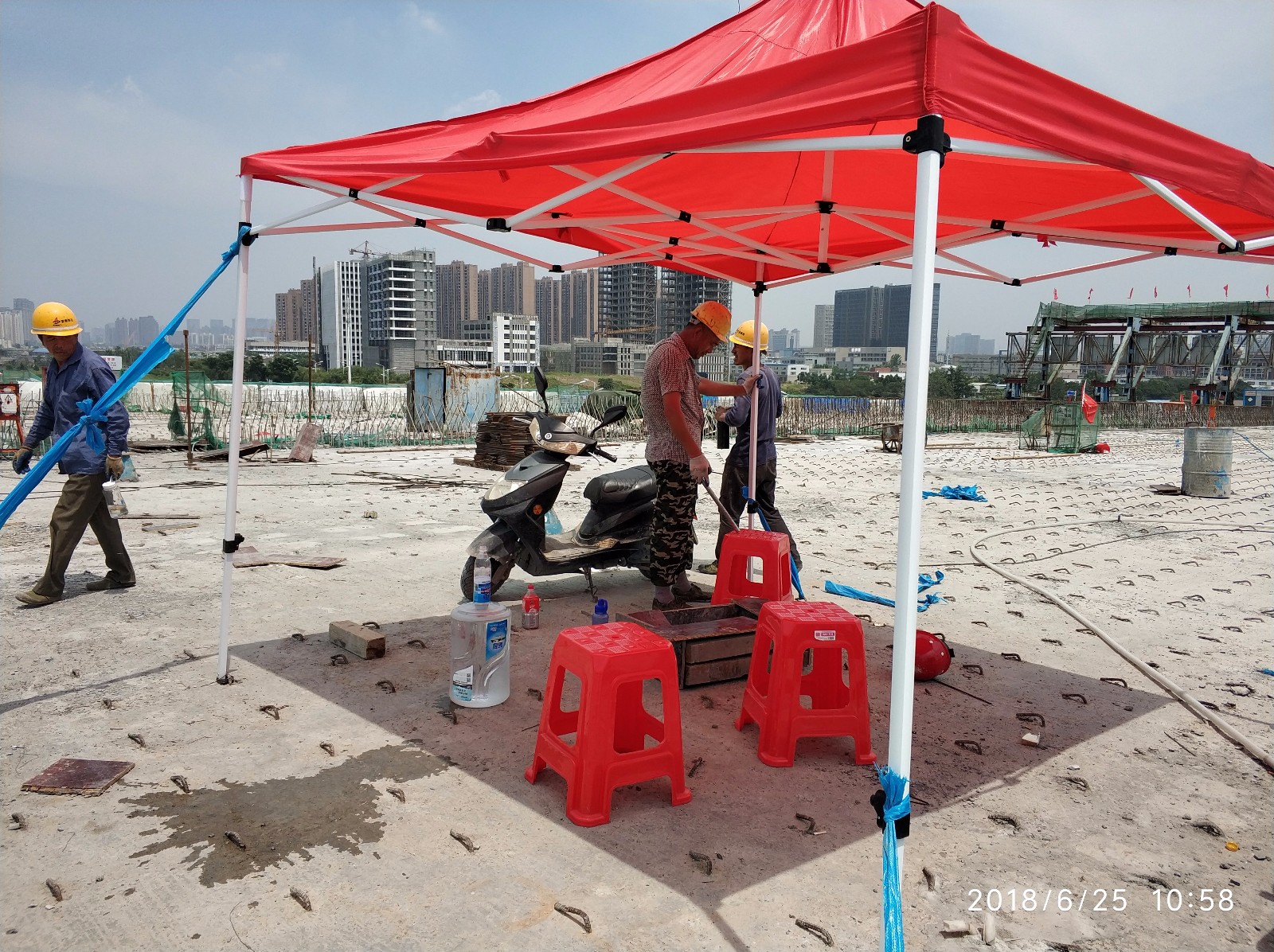 在具體執(zhí)行上,該項目制定四項措施保安全保進度。一是加強高溫安全宣傳教育。針對露天作業(yè),利用早會、安全教育專題會以及QQ、微信等形式宣傳防暑降溫知識,提高職工和農(nóng)民工高溫作業(yè)的自我保護意識和防范能力;二是開展“送清涼”活動。由項目工會牽頭組織。購置遮陽棚、防暑降溫藥品,安全部和工程部把防暑用品送到每一位工人的手中,并為工人講解了防暑降溫的知識和中暑后的應(yīng)急措施;三是落實防暑降溫措施。在工地設(shè)置休息涼棚,配備礦泉水、藿香正氣水等;四是科學(xué)調(diào)整作息時間。對露天高溫作業(yè)的員工進行輪班作業(yè),縮短連續(xù)作業(yè)時間,不安排室外作業(yè)者加班。
