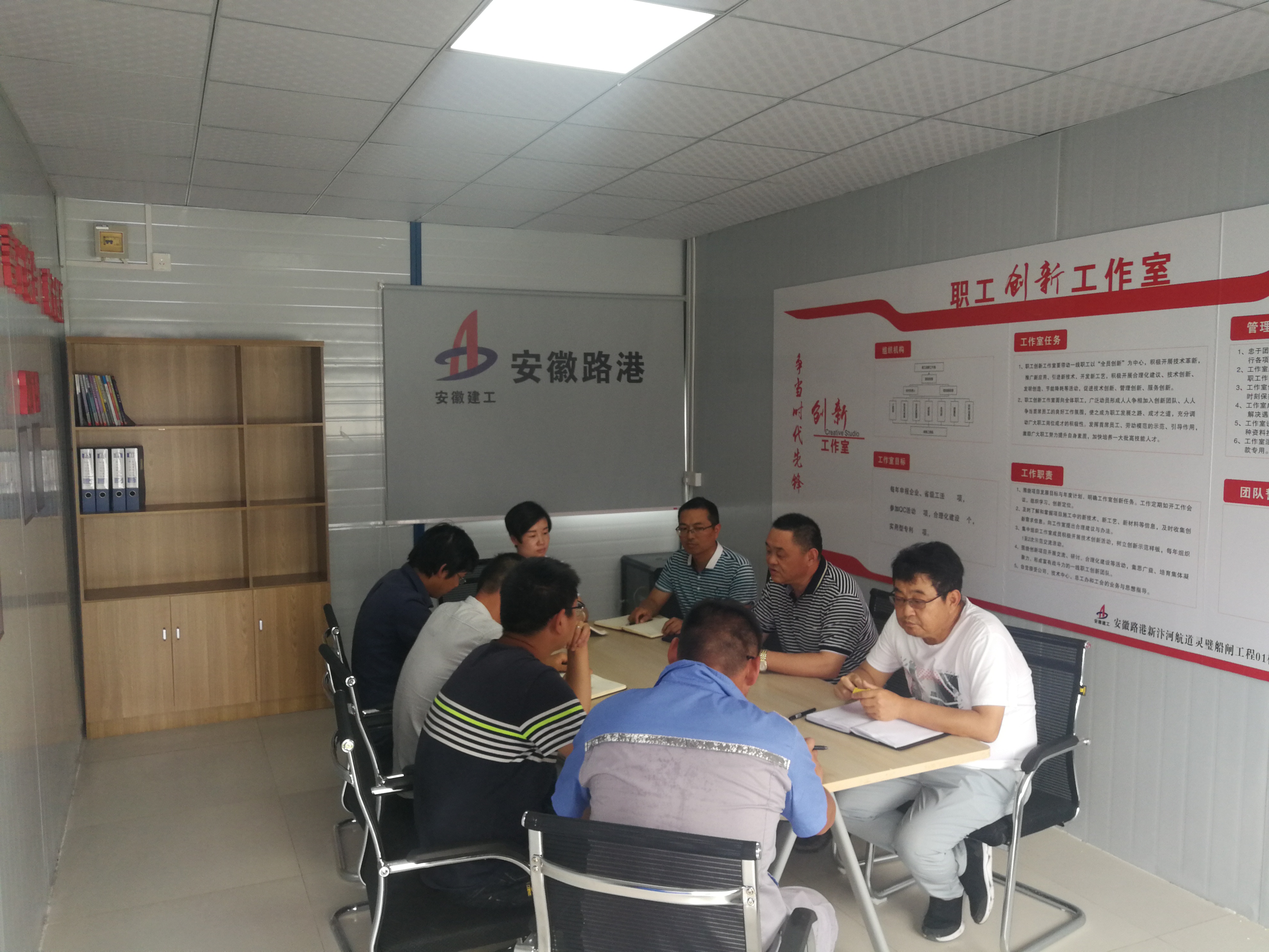 汪順利首先查看了項(xiàng)目職工創(chuàng)新工作室,聽(tīng)取了工作室管理人員的匯報(bào),了解了工作室制度建設(shè)相關(guān)情況,對(duì)項(xiàng)目部創(chuàng)新平臺(tái)搭建、職工技術(shù)創(chuàng)新相關(guān)工作給予肯定。