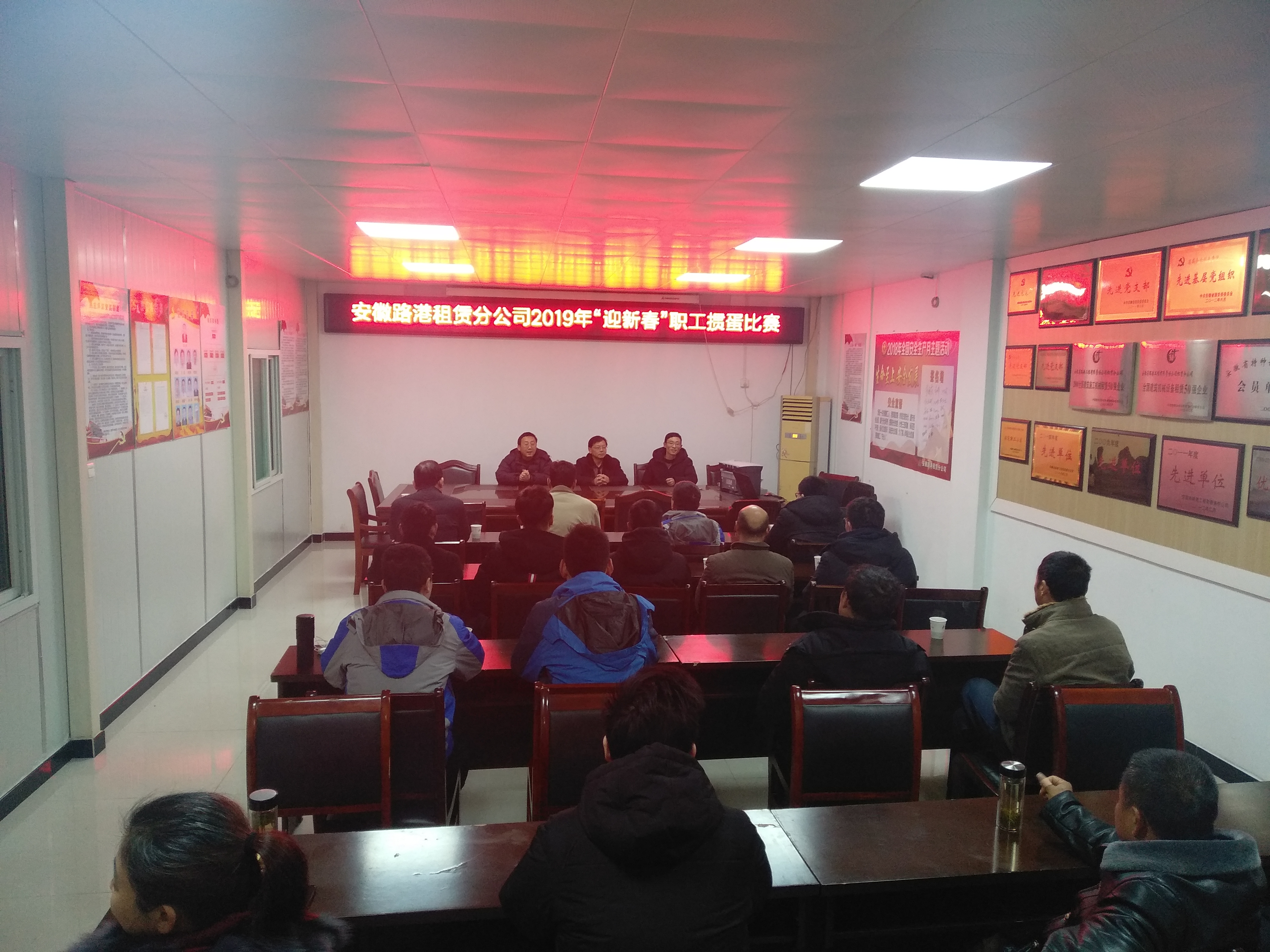 2019年1月5日,安徽路港租賃分公司舉行“迎新春”職工摜蛋比賽,共有來(lái)自分公司機(jī)關(guān)和所屬各項(xiàng)目部的12支隊(duì)伍參加。安徽路港公司工會(huì)副主席殷陽(yáng)明應(yīng)邀出席并宣布開(kāi)幕,分公司負(fù)責(zé)人宋國(guó)慶、黨支部書(shū)記趙峰、副經(jīng)理江波參加開(kāi)幕儀式。