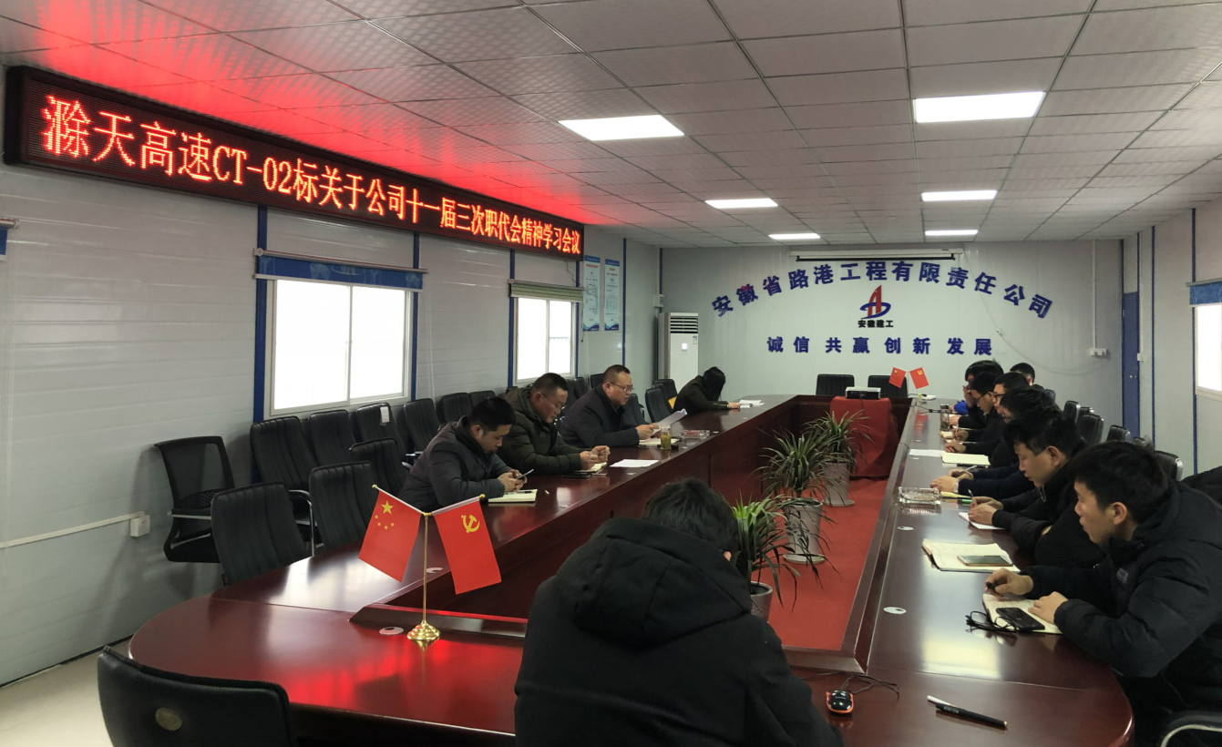 2月21日,滁天CT-02標(biāo)項(xiàng)目部召開(kāi)會(huì)議學(xué)習(xí)宣貫公司十一屆三次職代會(huì)精神,項(xiàng)目負(fù)責(zé)人主持會(huì)議,項(xiàng)目部領(lǐng)導(dǎo)班子、全體職工參加。