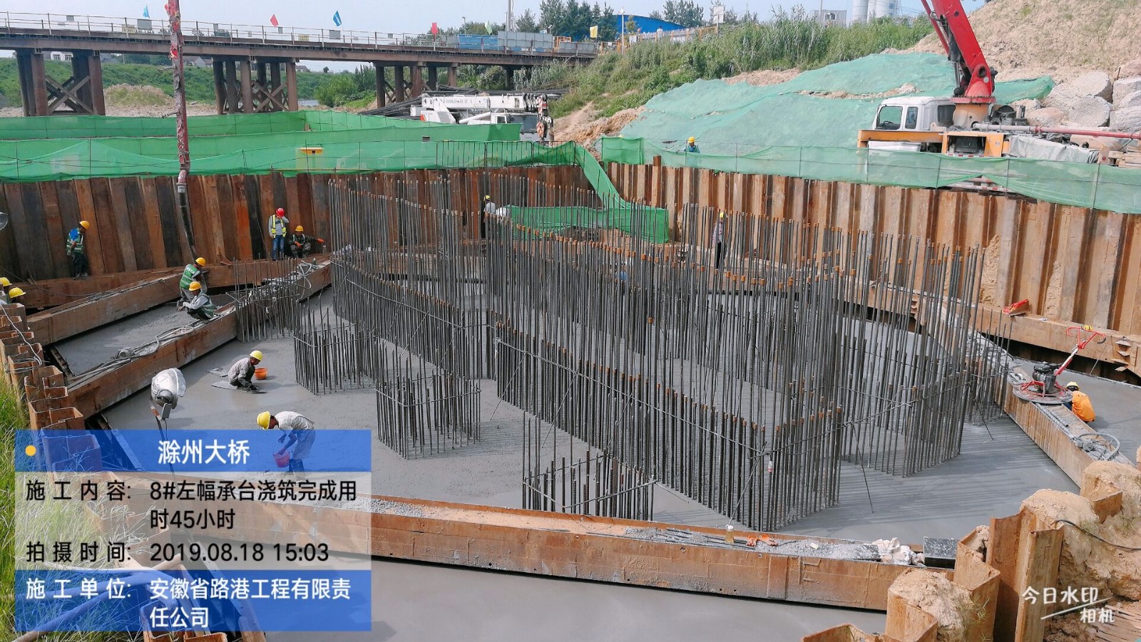 8月18日下午,經(jīng)過45小時不間斷連續(xù)作業(yè),蘇滁清流河大橋項目控制性節(jié)點8#主墩左幅承臺大體積混凝土順利澆筑完成。