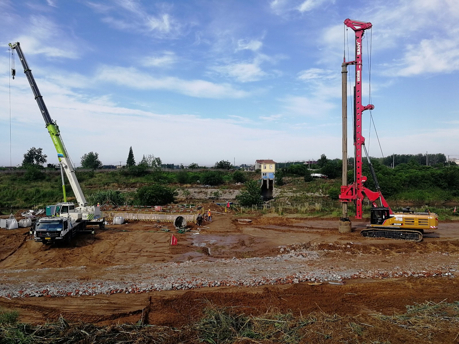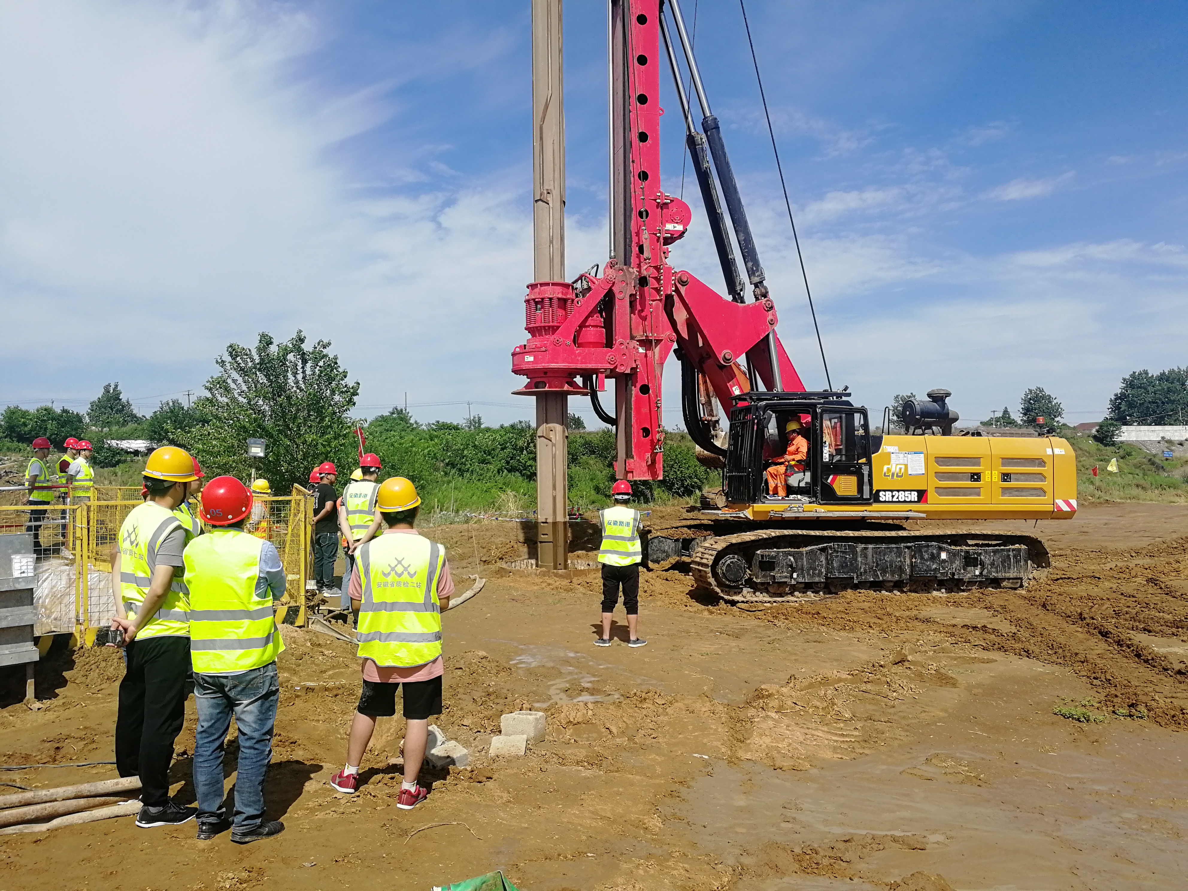 在施工現(xiàn)場,建設(shè)單位、監(jiān)理單位有關(guān)負(fù)責(zé)人聽取了項(xiàng)目負(fù)責(zé)人關(guān)于施工準(zhǔn)備情況的匯報(bào),對項(xiàng)目前期工作進(jìn)展及首根樁基的順利開鉆給予充分肯定。
