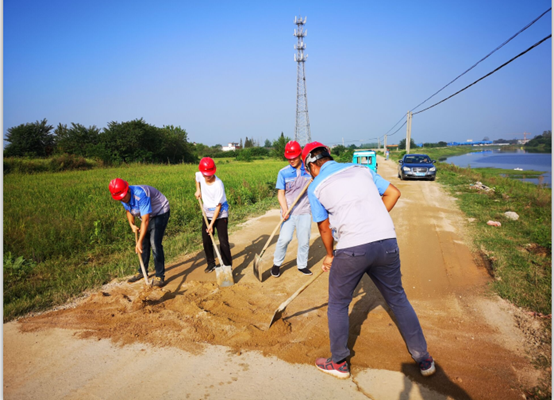 該條路是周邊村民的出入路,也是項(xiàng)目部的重要施工便道,項(xiàng)目黨支部利用黨員活動(dòng)日,由領(lǐng)導(dǎo)班子帶頭,發(fā)動(dòng)青年職工整修道路,為過(guò)往車輛和村民創(chuàng)造良好的交通環(huán)境,保障當(dāng)?shù)卮迕癜踩鲂泻晚?xiàng)目部生命線暢通。