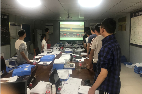 收看直播前,項(xiàng)目部還舉行了升旗儀式。