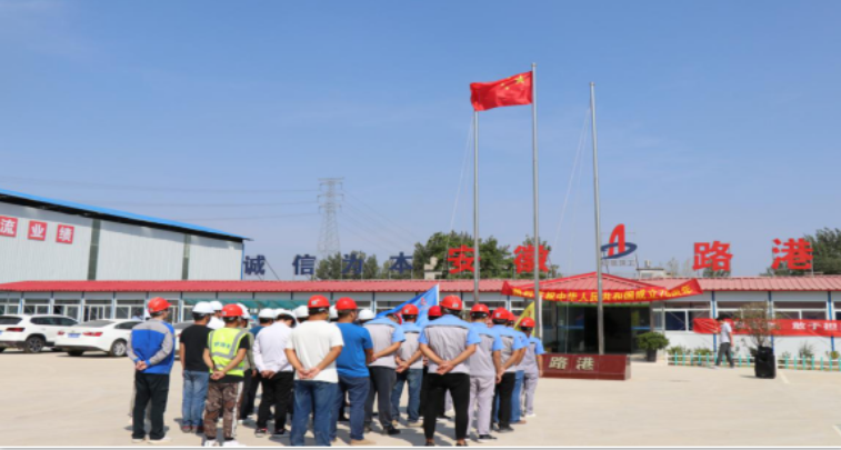 用鏗鏘有力的歌聲向祖國獻(xiàn)禮。國慶前夕,項(xiàng)目部聯(lián)合項(xiàng)目辦、總監(jiān)辦,全體人員統(tǒng)一著裝,舉行“迎國慶70周年,升國旗”活動。升旗儀式結(jié)束后,在宿州港投董事長汪順利的帶領(lǐng)下,全體人員高唱《我和我的祖國》,用響亮的歌聲、飽滿的深情表達(dá)對祖國的祝福!