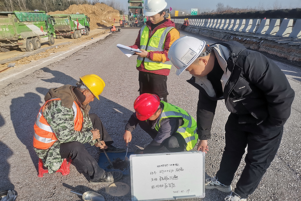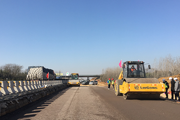 1月19日上午9:30分,合六改擴建04標首段試驗段級配碎石墊層、水穩(wěn)底基層順利攤鋪。