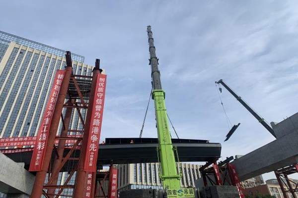 首片鋼箱梁的成功架設(shè),標志著文忠路高架項目上部構(gòu)造鋼箱梁施工正式駛?cè)肟燔嚨?/span>,為實現(xiàn)橋梁結(jié)構(gòu)整體完工奠定重要基礎(chǔ)。