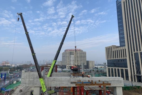 近日,文忠路高架一標XEN匝道橋首片鋼箱梁順利吊裝,順利拉開了文忠路高架項目鋼箱梁架設(shè)序幕。
