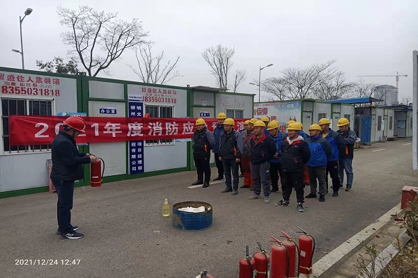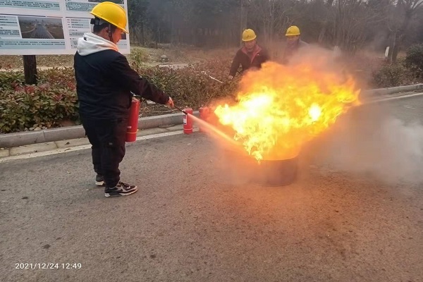 12月24日,路面分公司明光市嘉山大道上跨高速公路橋項目部開展冬季消防演練,向一線工人科普消防知識。