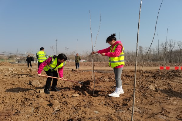 活動現(xiàn)場,職工們熱情高漲,當起了“園藝工程師”。大家分工合作,有的挖坑、有的扶樹苗、有的澆水。雖然有的人第一次參加植樹,但這絲毫不影響他們的勞動熱情。經(jīng)過1個多小時的努力,樹苗便“享亭玉立”在沃土上,雖然大家腳底全是泥土,但眼前這片新生的春意讓大家滿心歡喜。