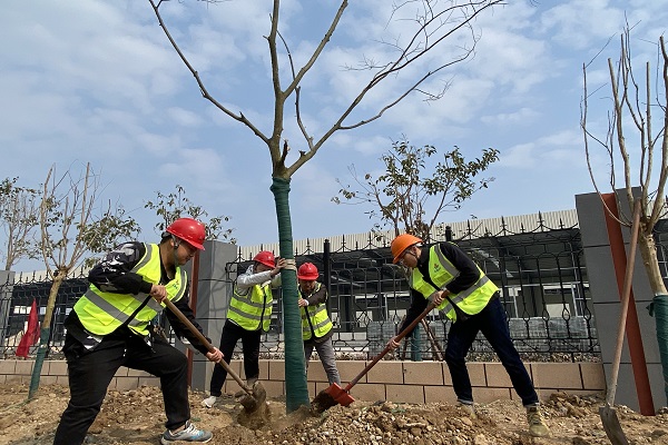 活動現(xiàn)場,職工們迎著春風(fēng),揮舞鐵鍬,三四人一組,種下一棵棵樹木,增一抹綠色,溢一片春光,全體職工積極參與植樹的場面,成為這個春天最美麗的風(fēng)景。