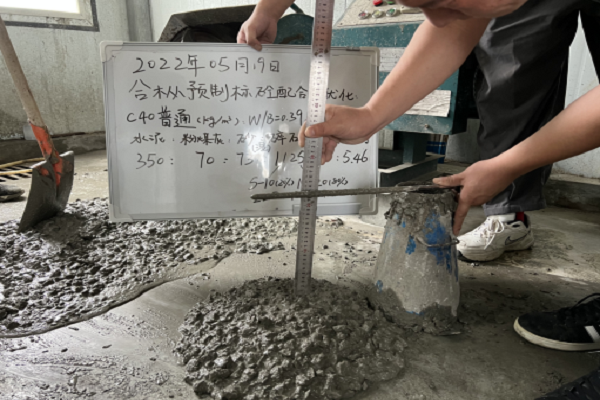 為貫徹落實(shí)公司2022年度工作會(huì)議精神,圍繞公司成本管理主線,優(yōu)化混凝土配合比,公司總工辦、技術(shù)中心聯(lián)合路港通檢測公司于3月底對(duì)在建項(xiàng)目的混凝土配合比資料進(jìn)行了收集匯總,4月份對(duì)數(shù)據(jù)進(jìn)行統(tǒng)計(jì)分析,5月19日,路港通檢測公司赴合樅預(yù)制標(biāo),展開C30普通、C30水下、C40普通、C50普通4個(gè)標(biāo)號(hào)的配合比優(yōu)化、比對(duì)、驗(yàn)證等工作。在滿足設(shè)計(jì)、施工規(guī)范的前提下,利用增加粉煤灰、礦渣粉代替部分水泥,將細(xì)集料由機(jī)制砂和細(xì)砂摻配,經(jīng)檢驗(yàn)混凝土工作性能均滿足要求。