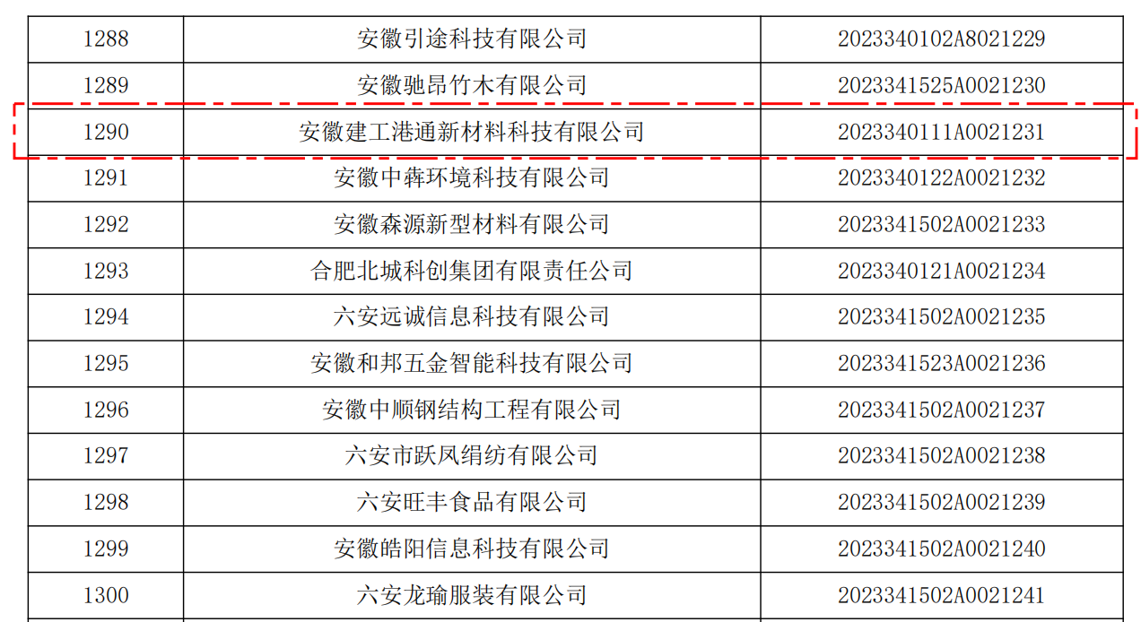 9月20日,安徽省科技廳公布了2023年第7批入庫科技型中小企業(yè)名單,安徽建工港通新材料科技有限公司榮列其中。