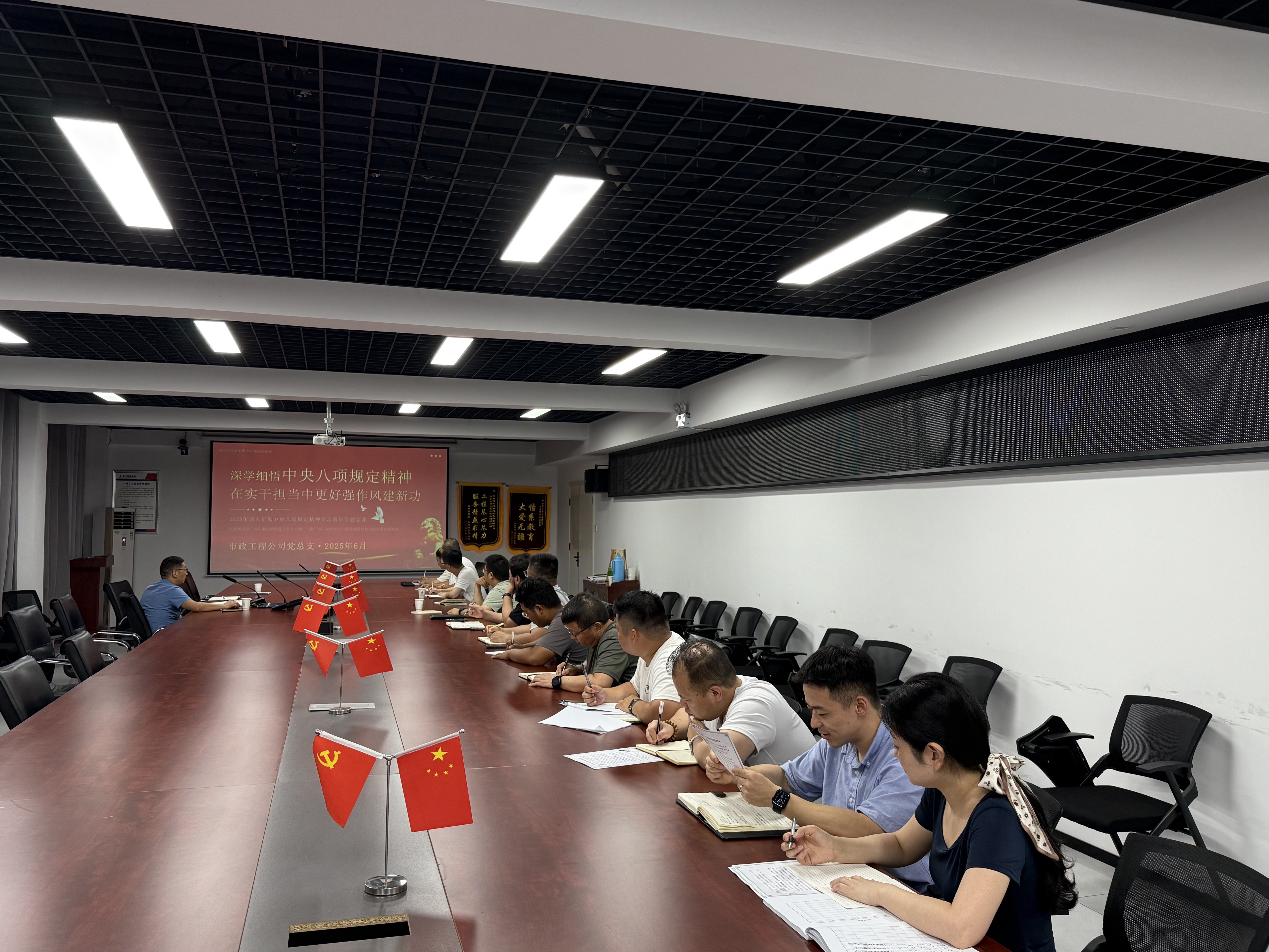 6月14日,市政工程公司黨總支副書記、副經(jīng)理、工會主席葛思虎到排水管網(wǎng)三期項目開展深入貫徹中央八項規(guī)定精神學(xué)習(xí)教育專題黨課。